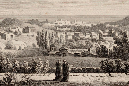 “Convent de Santa Eulàlia, vistes des del Desert de Sarrià”. Gravat publicat al llibre: Voyage Pittoresque et Historique en Espagne (1806-1820), d’Alexandre de Laborde. Arxiu Històric de la Ciutat de Barcelona.
