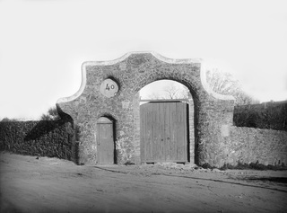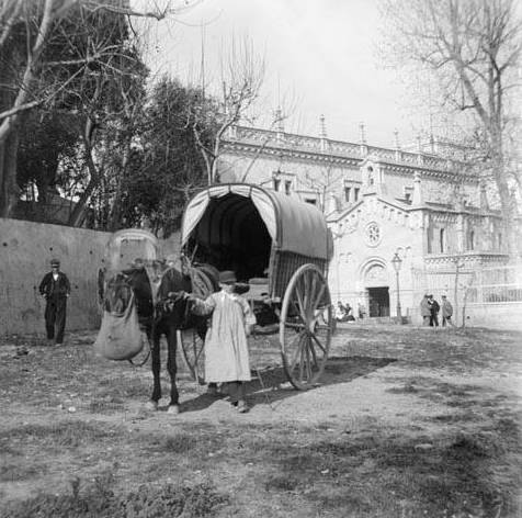 “Un carro de cavalls i un nen davant la capella de Santa Eulàlia del Desert de Sarrià, avui desapareguda”. Frederic Bordas i Altarriba (1897), font: AFCEC
