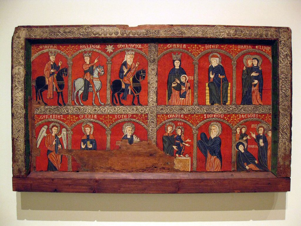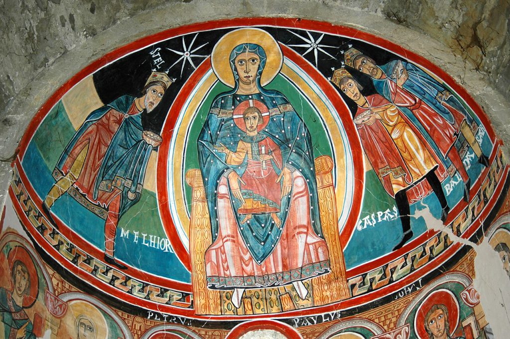 - L’adoració dels Reis i la Mare de Déu a l’absis de Santa Maria de Taüll, segle XII. Lleida, Catalunya: