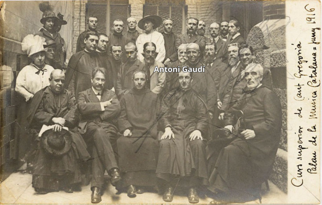 We find more signs of this shyness of Gaudí in his refusal to be photographed and the different strategies he developed to avoid appearing in the foreground, the few times he was forced to be part of a group photo (see: “Gaudí, portrait by portrait. From 52 to almost 74 years”). For example, the following image where Gaudí hides among his fellow Gregorian singers, as he had done as a child in the adventures with his first friends.